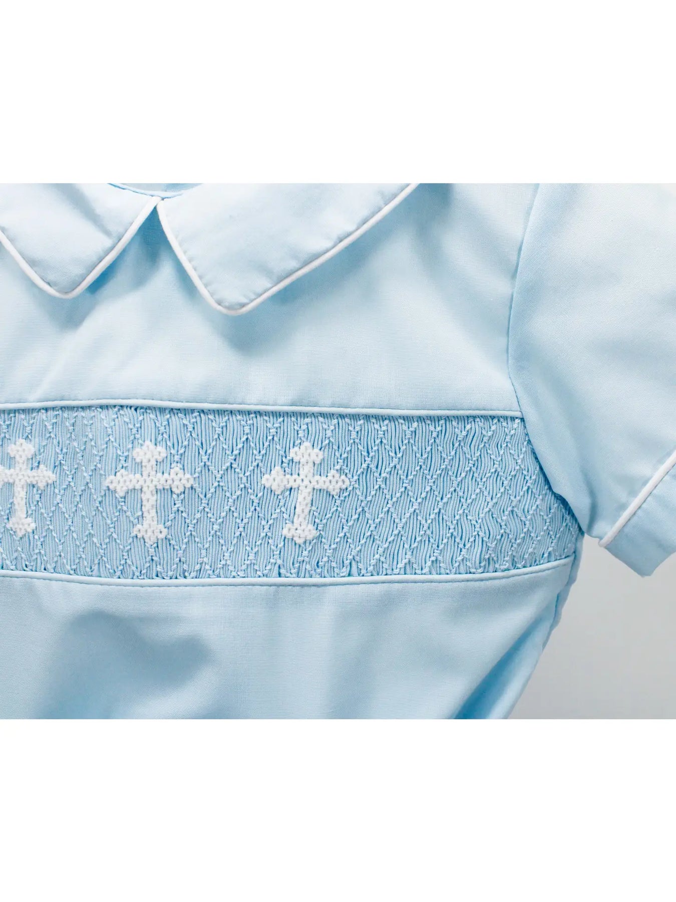 Welcome the newest addition to the Baby Blessings Clothing line - the White Crosses Jack Set. This charming set is a nod to classic southern style, crafted with love and care. Each stitch, fabric choice, and color combination is thoughtfully selected to create a timeless, quality garment. The sweet embroidery is the final touch, enhancing the joy your little one brings. Dress your baby beautifully with Baby Blessings Clothing.