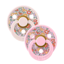 - Unique inspired BIBS pacifier with a round nipple.