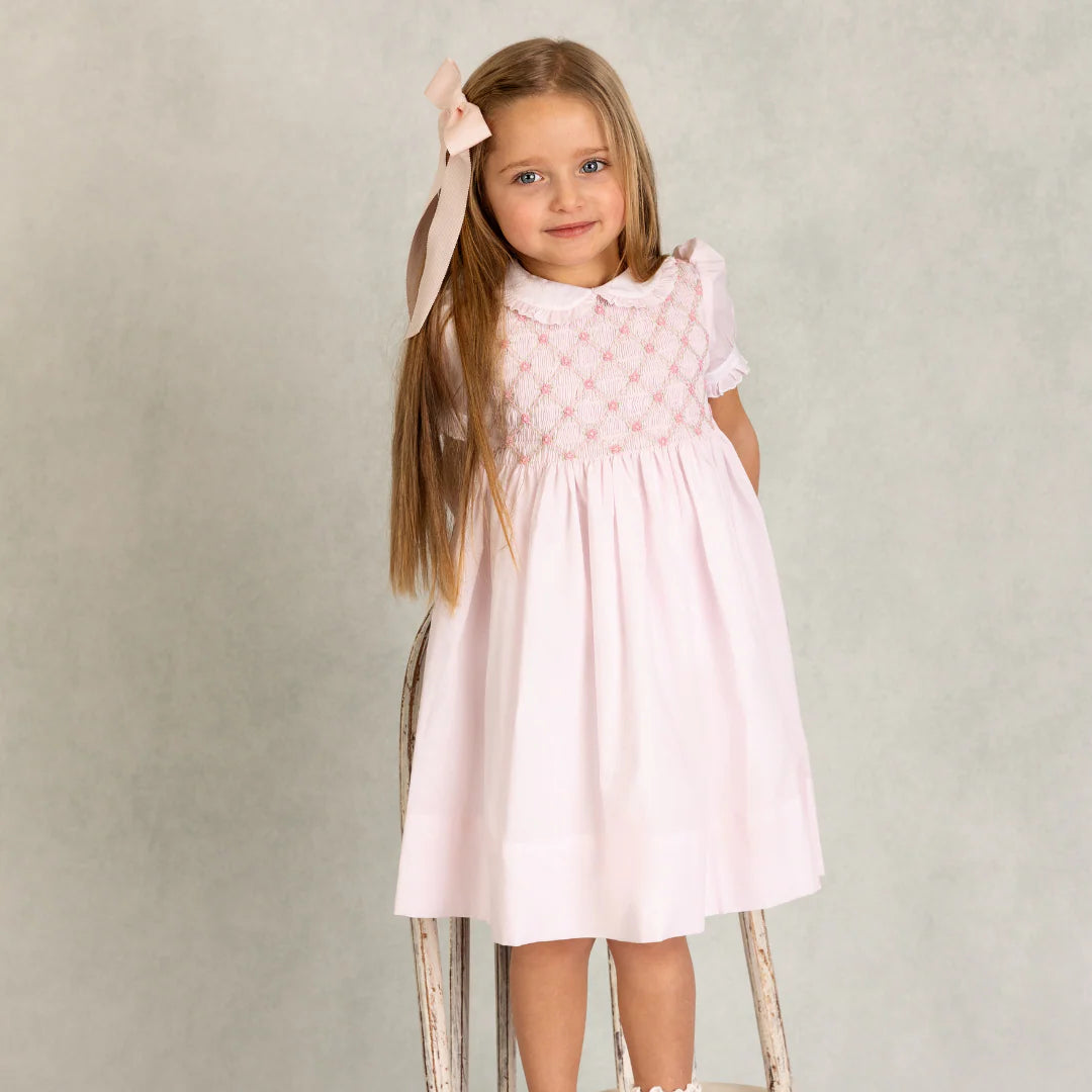 Regular price $96.97A classic smocked dress for your little girl this season, in that classic Feltman look families love! Designed with a darling peter pan collar and a floral embroidered fully smocked bodice. Lightweight, breezy, and timeless - perfect for your little princess!