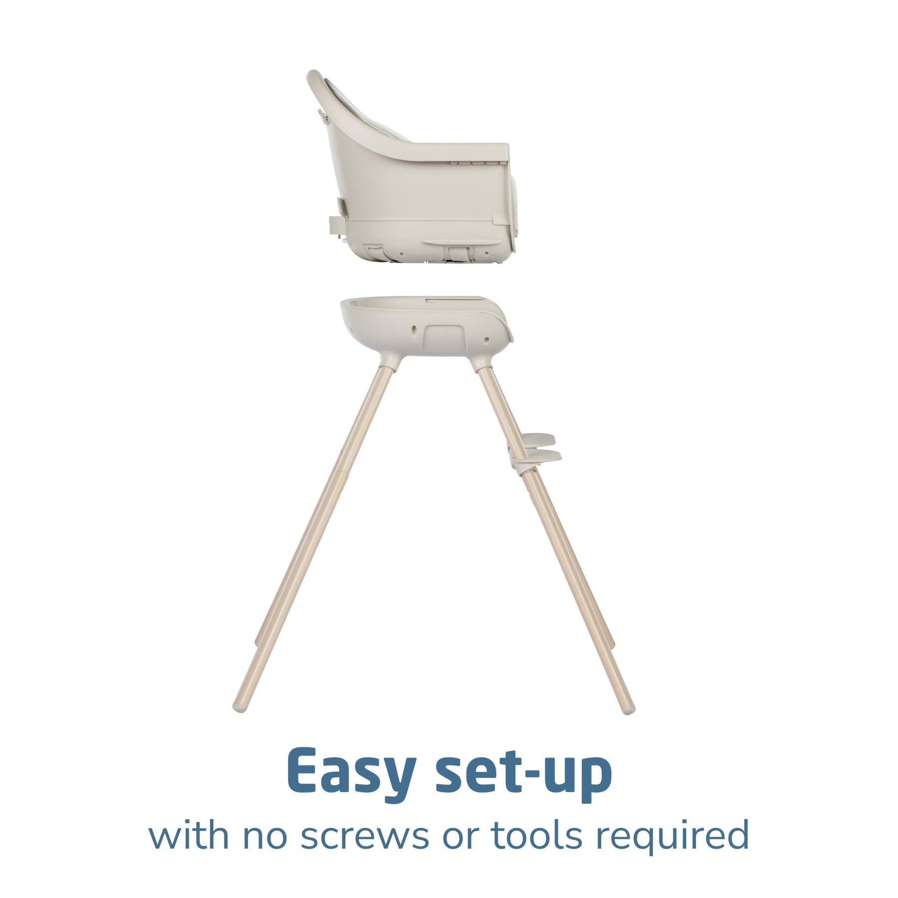 Mealtimes are messy, that’s why Moa is designed for easy clean-up. With a water-repellent machine-washable inlay, washable 5-point harness, and dishwasher-safe tray, your little one’s mealtime area is sure to stay as clean as you want it to be. Parents also love the simple set up: no need for screws or additional tools. Moa easily transforms to suit your child’s next stage of development.