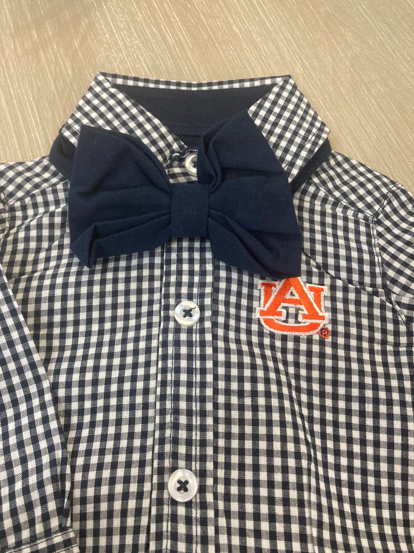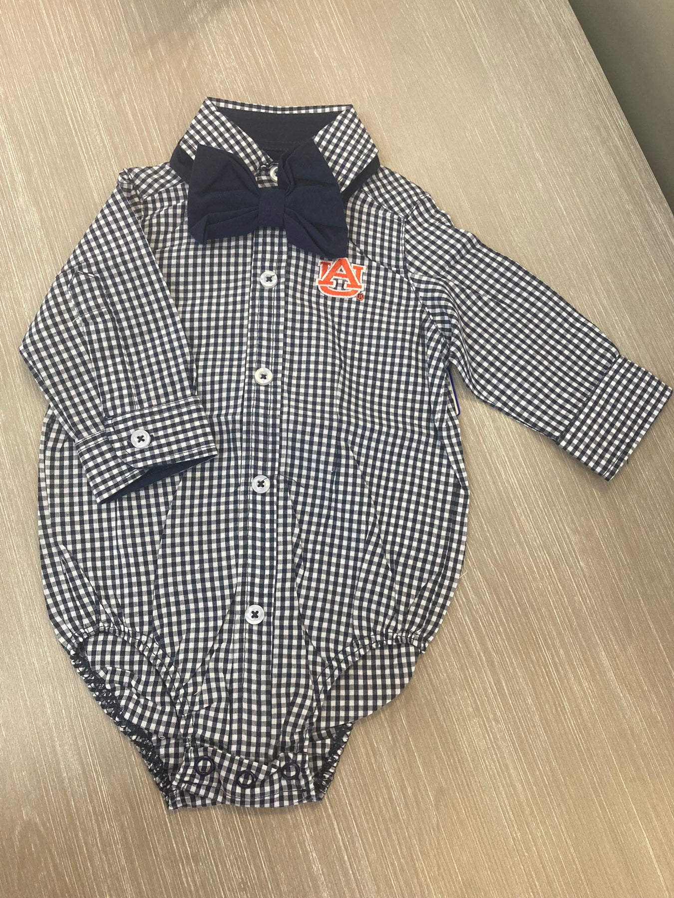 Creative Knitwear Auburn Gingham Bodysuit with Bowtie