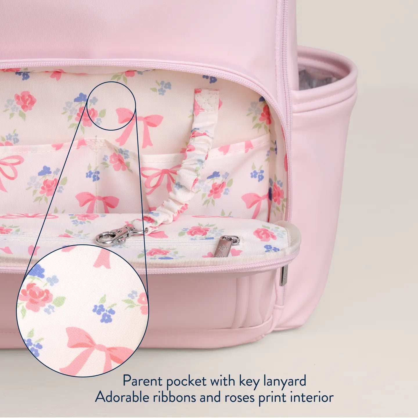 Your forever bag for baby & beyond, every (little) step along the way! The Boss Plus™ Backpack is everything you love in our original Boss Backpack with a sleek design and premium features. Elevated with thoughtful organization and style, this bag is perf to take on your new babe’s journey – from all packed up to welcome baby at the hospital to adventurous playdates to an amazing work, pumping or me-time bag for you. Plus, this is the ultimate baby diaper bag for those with a passion for travel as an airplane carry-on or a car seat tag-along. Features: - Tassel with Charm - Removable vegan leather accent tassel with engraved chain link charm - Tons of interior and exterior pockets, 19 total pockets (13 internal and 6 external including 2 large, insulated bottle pockets) and a unique, easy access front mom pocket with 3 interior pockets and key lanyard. Laptop pocket – fits up to a 15” laptop. Zippered tall front external pocket - Coordinating easy wipe changing pad included with whimsical "head" and "toes" printed on the inside. - New Itzy Ritzy Logo and Braid Rubber Foot design - Stroller Straps - Includes coordinating stroller straps to free your hands when you are on-the-go