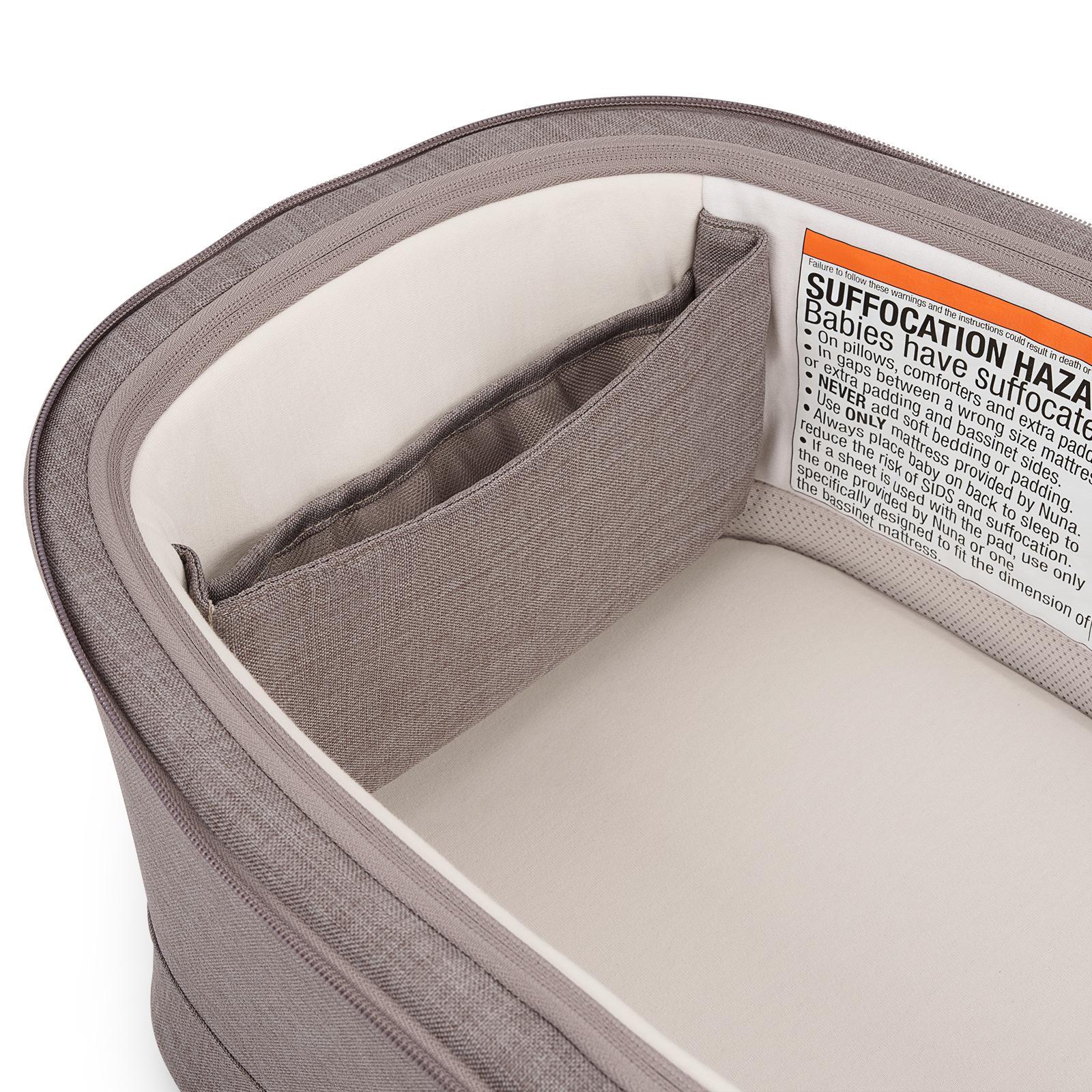 Soft and snug for day and night sleeping, Nuna's SWIV & TRIV series bassinet with stand keeps your baby close during those tender early months. Nighttime feedings become shared secrets, and every dawn creates a newfound connection.