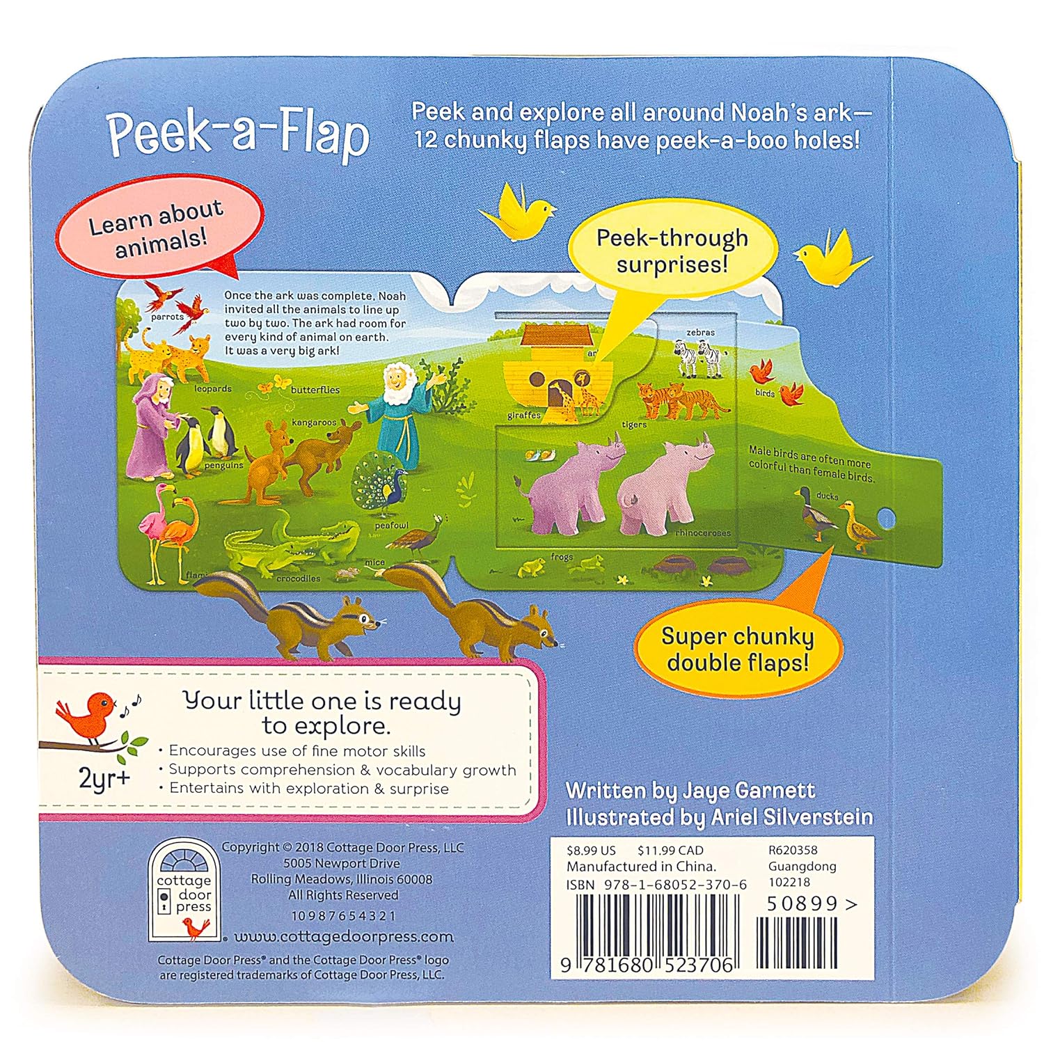 Regular price $9.99Share the story of Noah and his ark with your little boy or girl with this peek-a-flap board book. Enjoy reading about Noah's trust in God in simple language for young children with this peek-a-flap board book. Learn how he builds an ark, gathers food, and invites animals to climb aboard two by two. Meet all sorts of adorable animals and find tons of fun facts about them with each lift-a-flap throughout the book. Build a foundation of faith with this Bible-themed book for kids and practice vocabulary by pointing to each labeled object throughout.