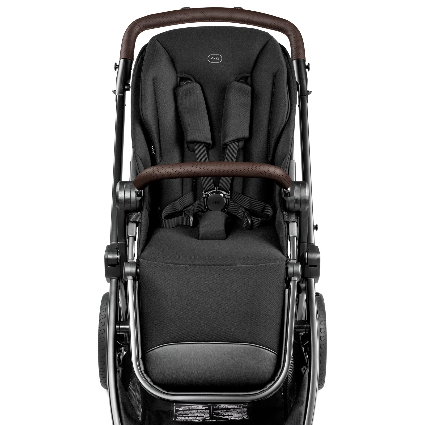 Tilt-in-Space Reversible Seat. The comfortable reversible seat is approved for children from birth up to 50 lbs. The Tilt-in-Space system makes it possible to use the large reversible seat in 3 modes, from seated to relaxed. Eco leather open-close front bar.